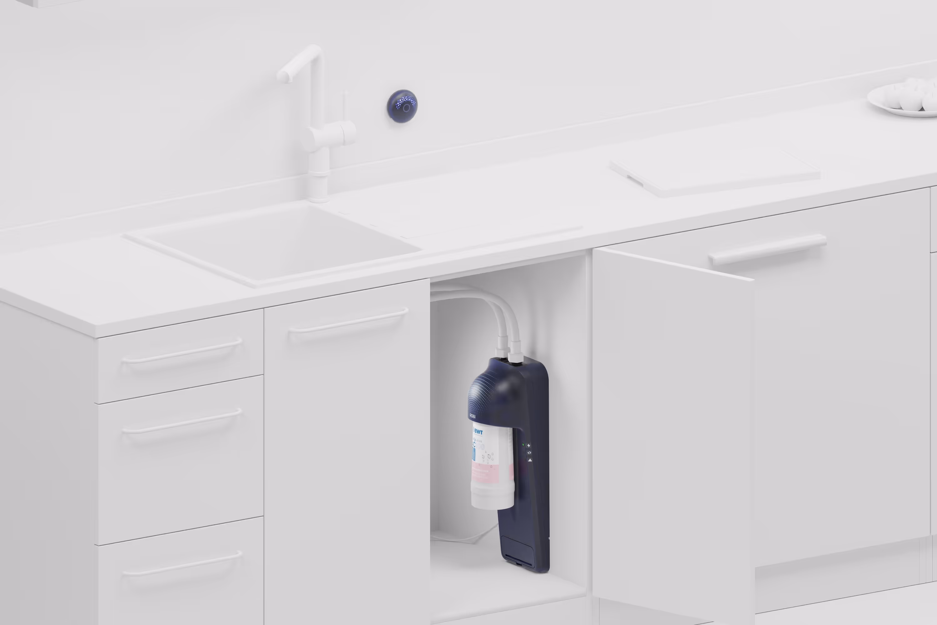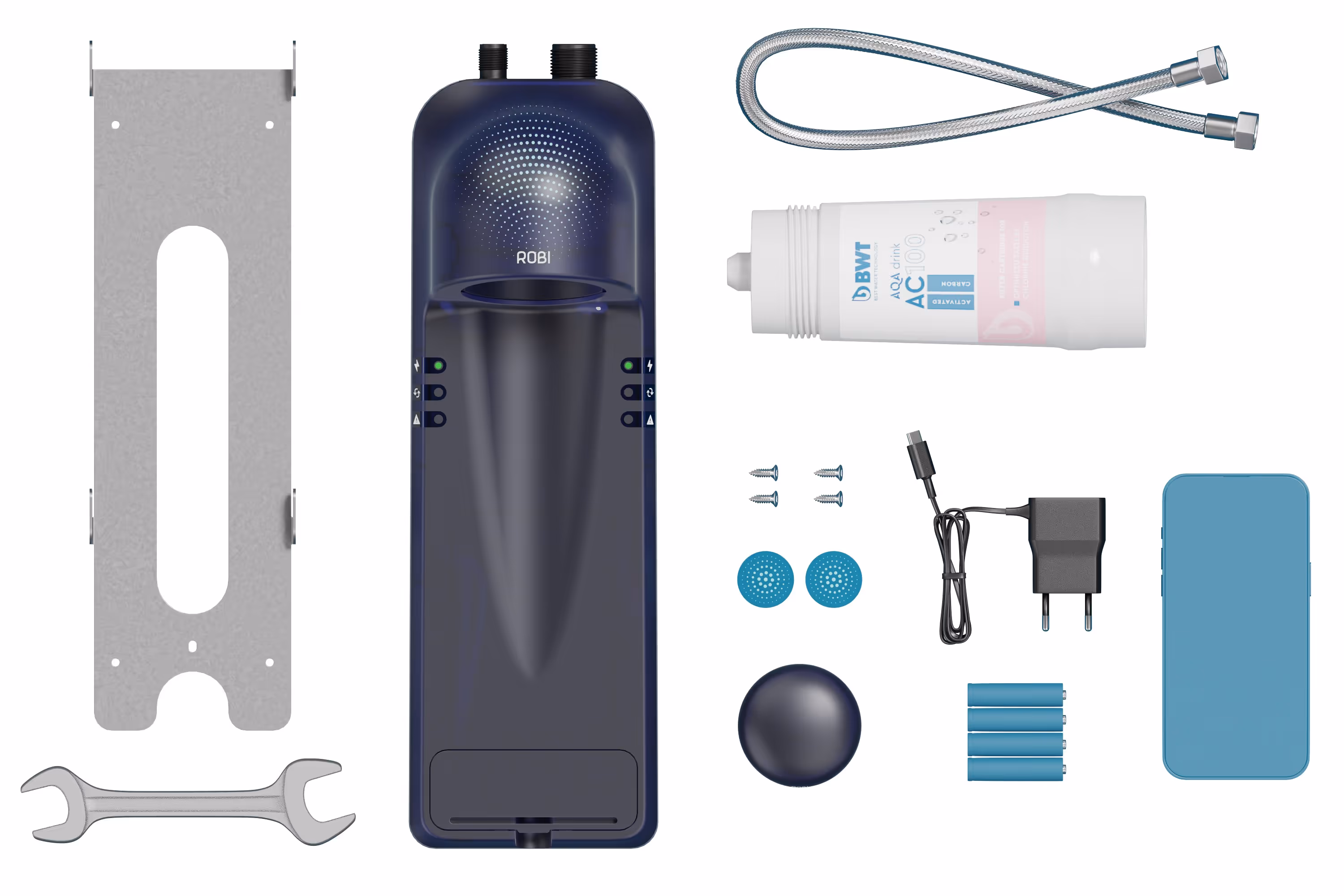 Together with Robinetto we've built the Robi Box, a sustainable system that, with the push of a button, turns tap water into high-quality drinking water.